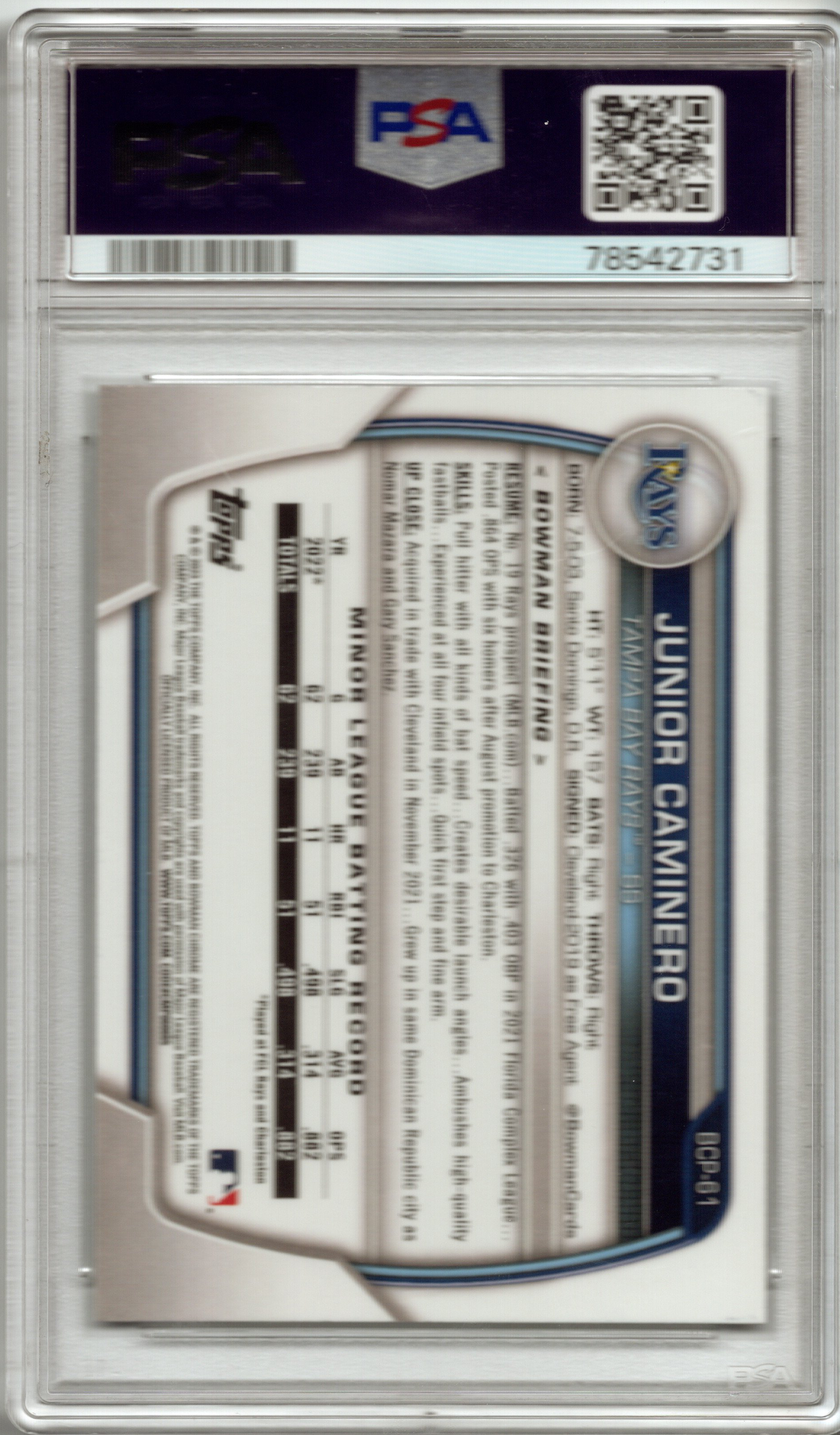 2023 Bowman Chrome Prospects Junior Caminero #BCP61 PSA 10 GEM MINT